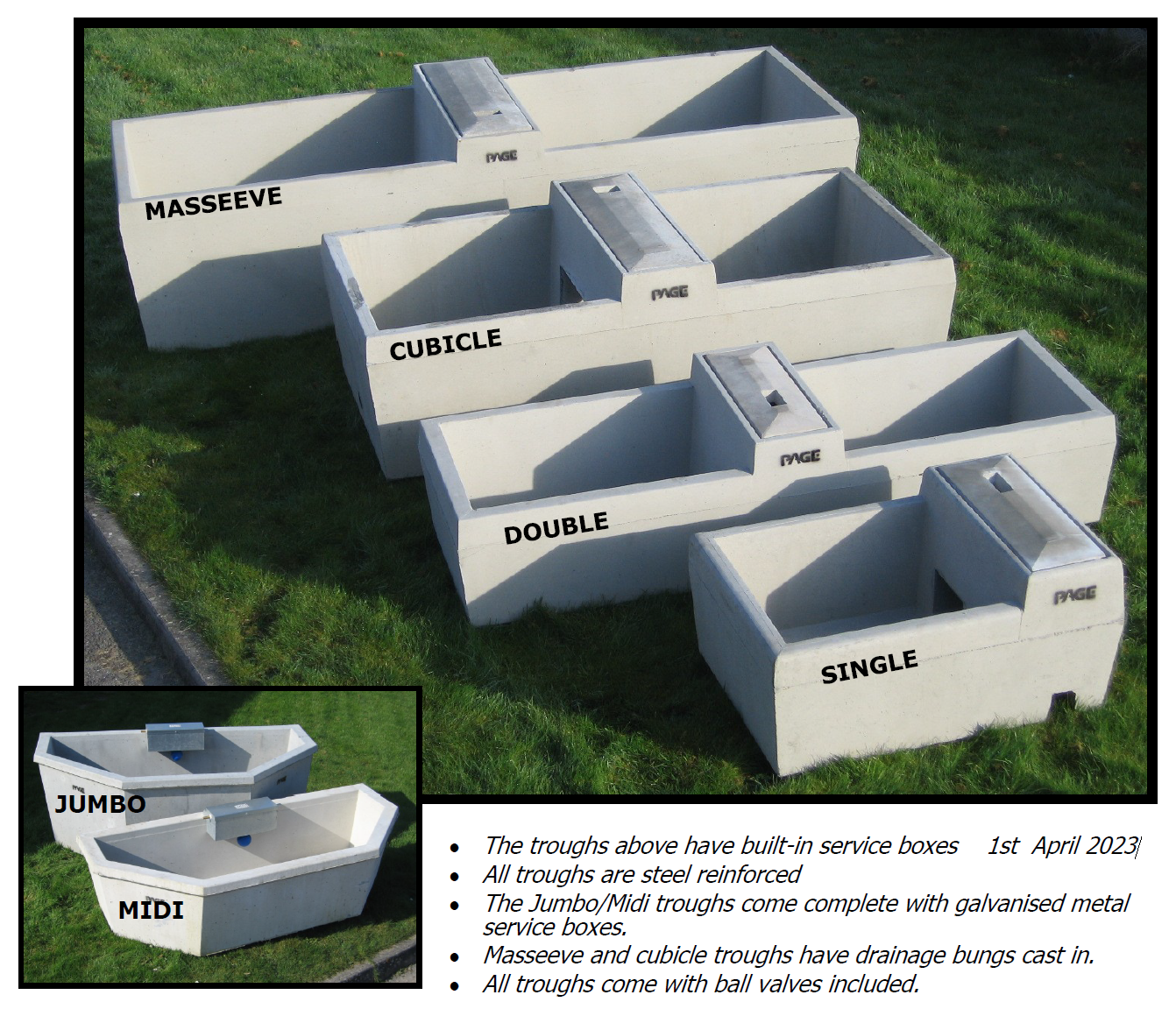 Our smallest water trough; with a built in service box and drainage bung cast in. Includes reinforced concrete Lid.